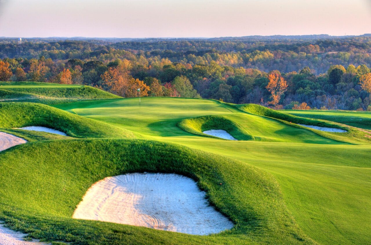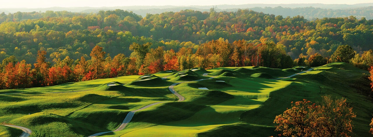 The Pete Dye Course, designed by Pete Dye with Chris Lutzke on-site as project architect, is situated in some of Indiana’s highest elevations within the rugged terrain of French Lick in the southern half of the state. With 40-mile panoramic views, this championship course is rightly known as one of the best that Indiana has to offer.